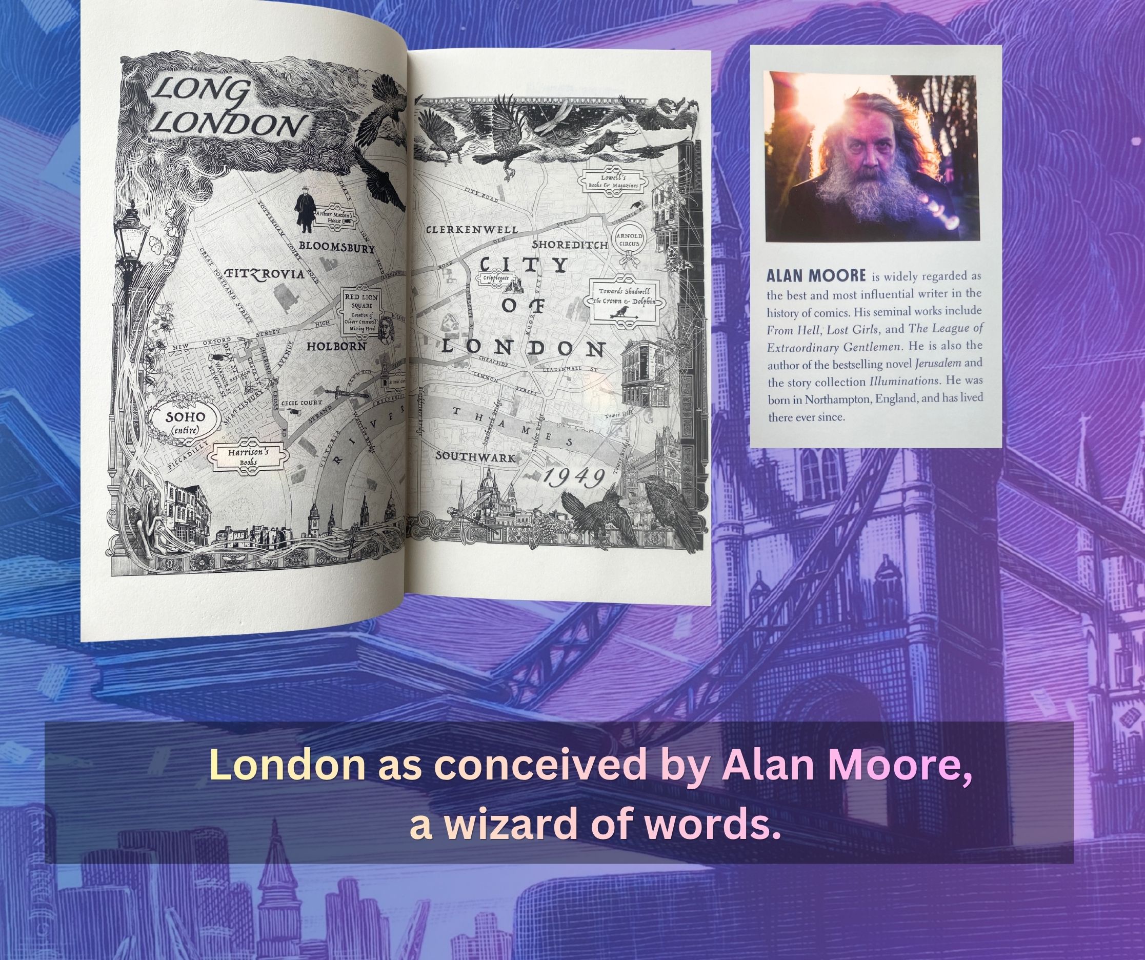 Aside from word-smithing, Alan shines at describing the city itself, positioning the story within a historical moment, sketching familiar characters, and giving dialogue with the many flavors of London dialects. I clicked into the world and believed in the characters, though they ranged from human to abstract sentient archetypes.